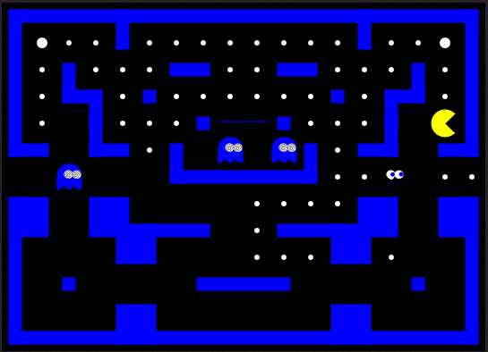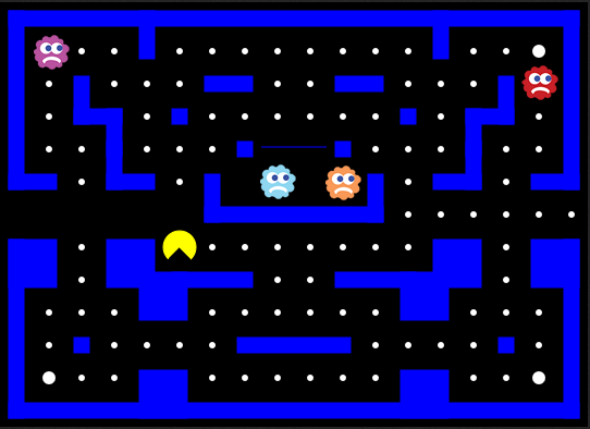 Pinky will start chasing HAE pacman right away, he will always aim 4 fields ahead and 4 fields left of HAE pacman. His home is the upper left corner.